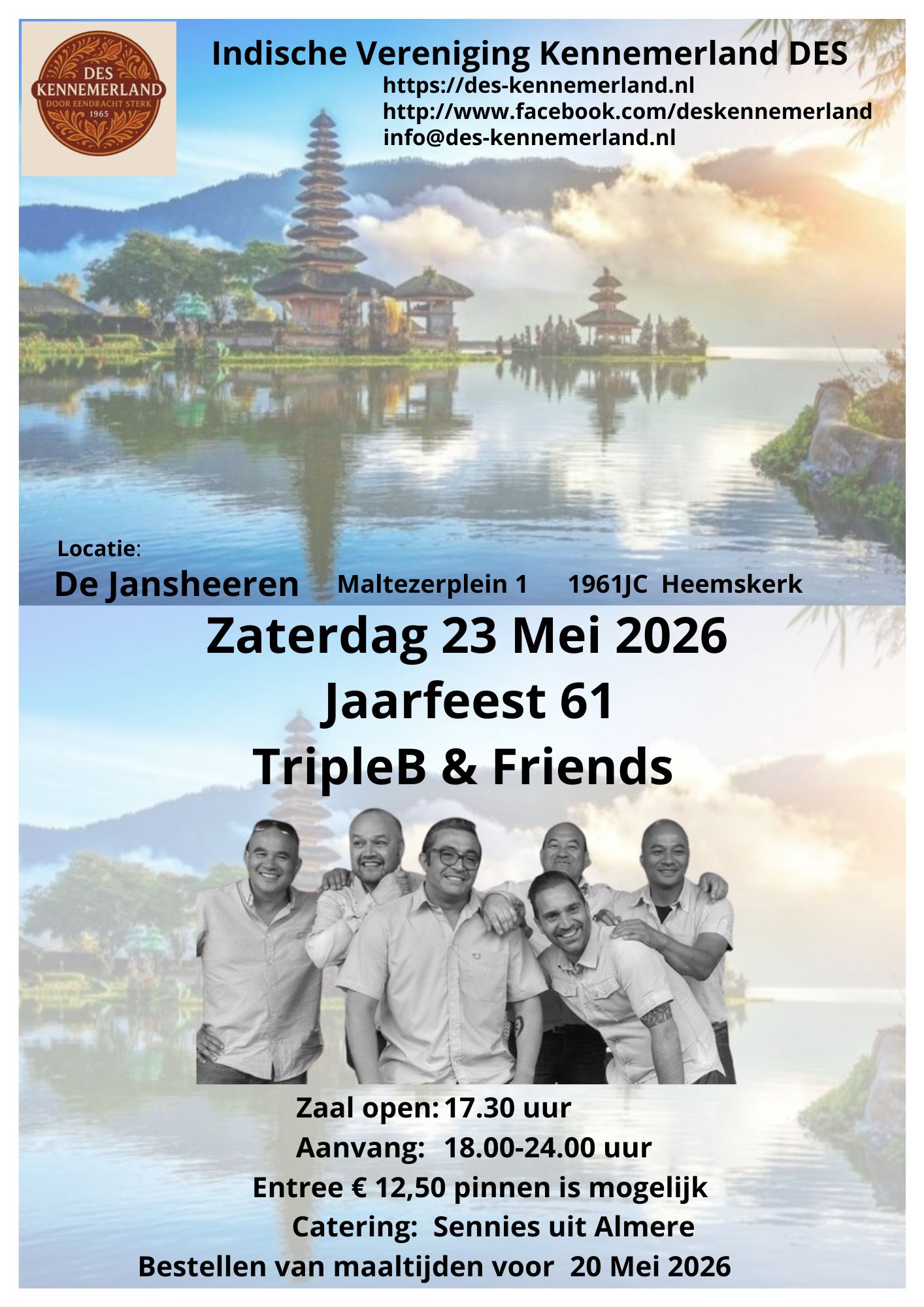 Jaarfeest 61 zaterdag 23 Mei 2026 van 18.00 tot 24.00 uur. (zaal open 17.30 uur) met